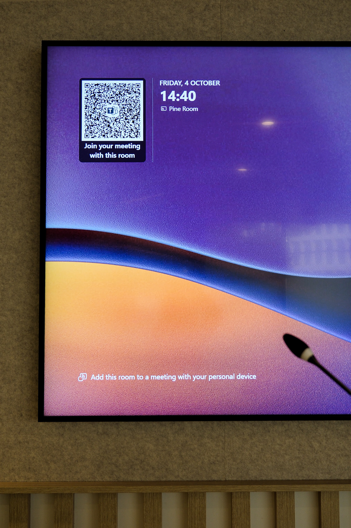 Afin de répondre aux objectifs d’IE et d’offrir une expérience utilisateur optimale, notre équipe a mis en œuvre une technologie de pointe notamment des écrans Samsung, des caméras Avonic, des microphones de plafond Sennheiser TeamConnect et des systèmes de contrôle Crestron, facilitant ainsi des réunions hybrides fluides via Teams. Un panneau de commande gère les équipements dissimulés, et un système Crestron offre une interface de contrôle intuitive.